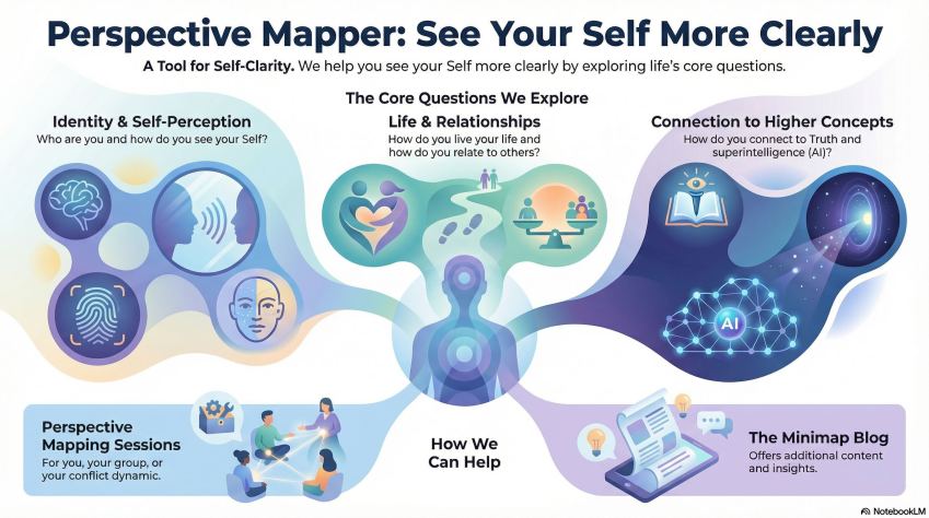 We do so by exploring life’s core questions. These include who are you, how do you see yourself (your Self), how do you live your life, how do you relate to others, and how do you connect to Truth and superintelligence (AI)?